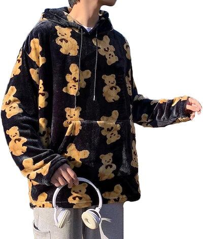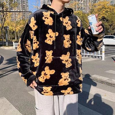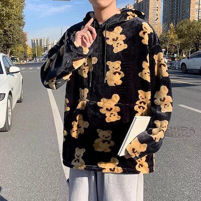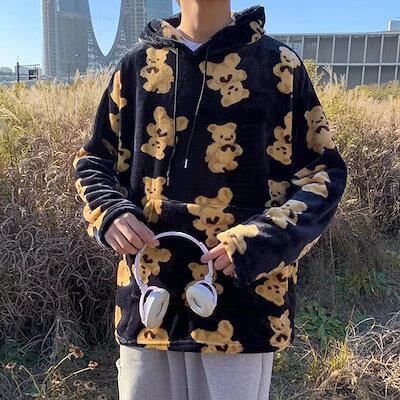 パーカー クマ 熊 かわいい プルオーバー メンズ フード付き レディース ボア付き 長袖 トレーナー フリース 春秋冬 ポケット付き ドローストリング付き カジュアル 肌触り良い 花火大会 部屋着