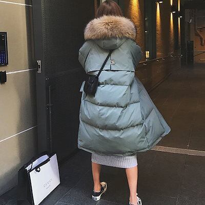 冬ロングコート 厚手保温 中綿コートレディース 韓国ファッション 暖かいアウター 防寒 大きいサイズ体型カバー? ダウンジャケット 付 ふさふさした帽子 /着痩せ ジャケット裹起毛