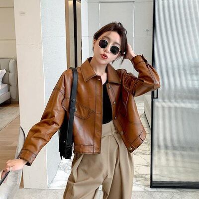レギュラー/裏起毛 ライダースジャケット レディース ショート丈 アウター 秋冬 レザー革ジャン トップス