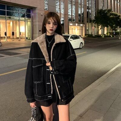レディース デニム アウター 秋冬 ゆったり 韓国版 カジュアル 百掛け ins トップス 裏起毛 厚手