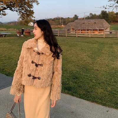 韓国ファッション 裏起毛 暖かい アウフェイクファーコート高級な質感オルチャンコート レディース