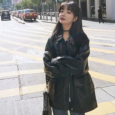 薄い裏起毛 レディース アウターライダース ジャケット 防風 レザージャケット ゆったり オーバーコート