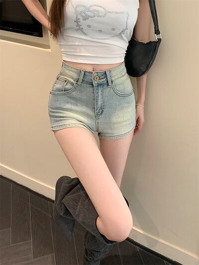 2024 春夏パンツ デニム ジーンズ ハーフパンツ ハイウエスト 脚長効果 美脚効果 レッグ 細見え カジュアル加工 かわいい おしゃれ 春 韓国系ファッション レディース お出かけ