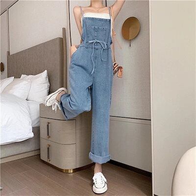 デニムサロペット レディース ワイドパンツ ロング丈 オーバーオール オールインワン 体型カバー 大きいサイズ 春夏