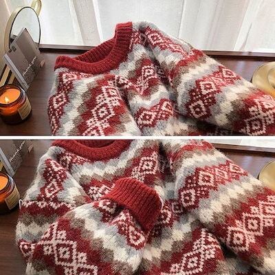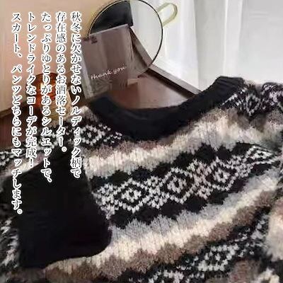 セーター レディース ノルディック柄セーター 厚手 秋 冬 洗える 白 春 ニット 長袖 クルーネック Vネック トレーナー おしゃれ ニットセーター ノルディック 柄 タートルネック ふわふわ 人気