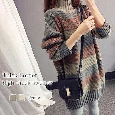 セーター レディース 太ボーダーハイネックセーター かわいい ブランド クルーネック 洗える ニットセーター ゆる 春 人気 ケーブル編み ふわふわ 柄 黒 ノルディック ハイネック 長袖 冬 Vネッ