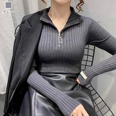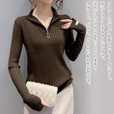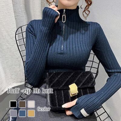 セーター レディース ハーフジップリブニット タートルネック ゆる ざっくり かわいい 厚手 ケーブル編み トレーナー 人気 白 黒 ブランド 柄 ハイネック ニットセーター 春 クルーネック おしゃ