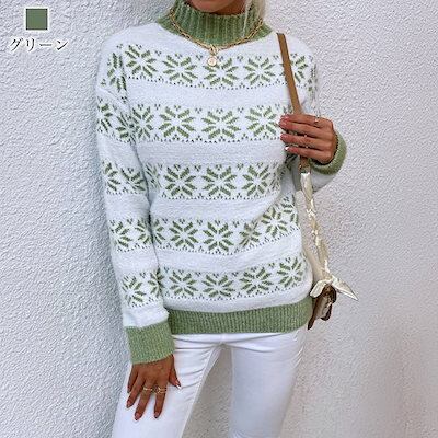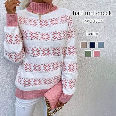 セーター レディース ハーフタートルネックセーター クルーネック 長袖 Vネック ふわふわ ブランド 春 おしゃれ 人気 秋 タートルネック ノルディック ロング ざっくり 白 厚手 柄 ケーブル編み