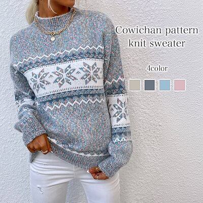セーター レディース カウチン柄ニットセーター 柄 タートルネック ニット ノルディック クルーネック ブランド 白 トレーナー 冬 Vネック 長袖 厚手 人気 ふわふわ ケーブル編み ロング ゆる