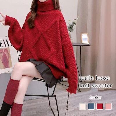 セーター レディース タートルゆるニットセーター 厚手 ケーブル編み ざっくり 春 ノルディック ゆる 人気 ふわふわ 白 ニット 秋 ニットセーター かわいい トレーナー 洗える 柄 黒 タートルネ