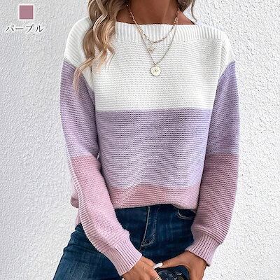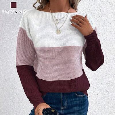 セーター レディース マルチカラーボーダーセーター クルーネック 長袖 Vネック ふわふわ ブランド 春 おしゃれ 人気 秋 タートルネック ノルディック ロング ざっくり 白 厚手 柄 ケーブル編み
