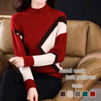 セーター レディース スタンドネックニットプルオーバー クルーネック 長袖 Vネック ふわふわ ブランド 春 おしゃれ 人気 秋 タートルネック ノルディック ロング ざっくり 白 厚手 柄 ケーブル
