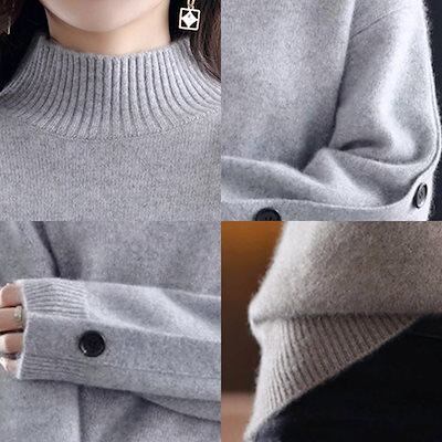 セーター レディース 袖ボタンハイネックニット 人気 ハイネック ゆる 柄 ふわふわ ざっくり 洗える 春 冬 ノルディック 長袖 黒 厚手 ニットセーター ケーブル編み おしゃれ かわいい ニット