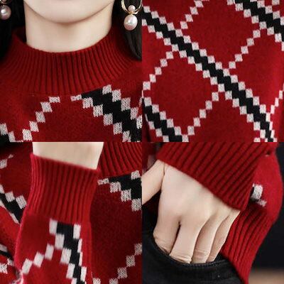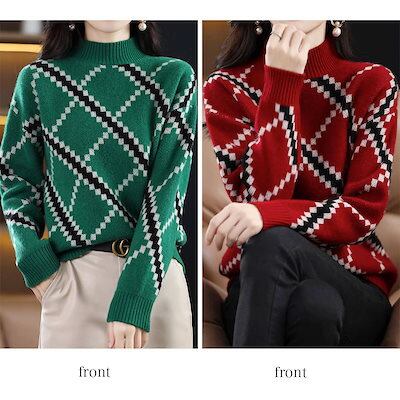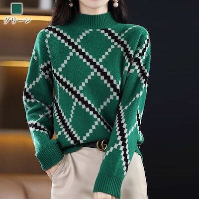 セーター レディース ひし形デザイン柄セーター 秋 ゆる おしゃれ かわいい 柄 タートルネック 長袖 黒 洗える ニット ケーブル編み ふわふわ 厚手 ざっくり 冬 ニットセーター 白 ハイネック