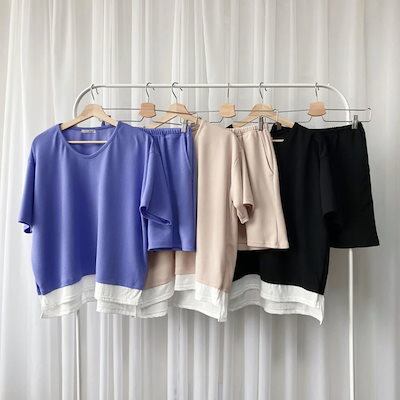 夏 涼しく楽ちんセットアップ 2024 スウェット上下セット 半袖 レディース 服 レディース 2点セット ルームウェア セットアップ 部屋着 スポーツウェ