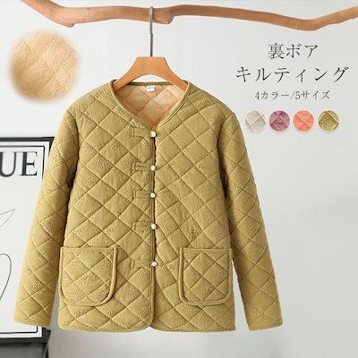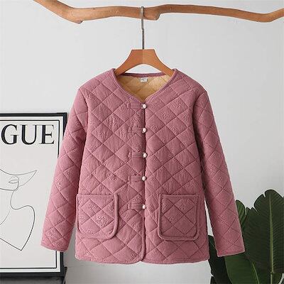 キルティングジャケット レディースコート トップス 長袖 中綿 キルティング ジャケット ノーカラー 秋 冬 中華風 厚手 ブルゾン 防寒 刺繍 ライトアウター 裏ボア 裏フリース シンプル 中綿入り