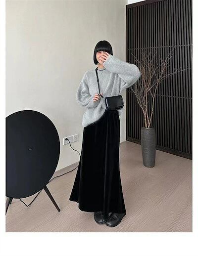 スカート ロング マーメイドスカート 裏起毛 秋冬 裏ボア きれいめ レディース ハイウエスト ウエストゴム Aライン あったか 暖かい 防寒 裏フリース シンプル 着る毛布 体型カバー 着痩せ カジ