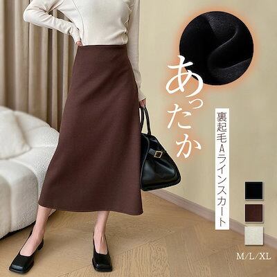 スカート ロング レディース 秋冬 Aライン 裏起毛スカート ラシャ Aラインスカート きれいめ ロングスカート ボトムス 暖か 防寒 裏フリース ハイウエスト ウエストゴム あったか ふわふわ 体
