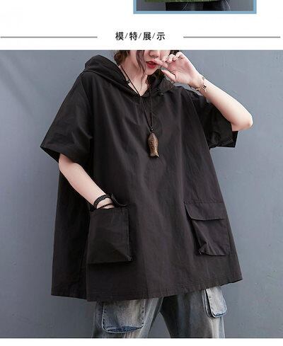 「ファットガール」 2024夏 パーカー 半袖 トレナー フード付き 無地 ポケット スウェット 体型カバー 大きいサイズ ゆったり レディース