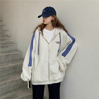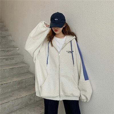 パーカージップアップパーカーフード付スウェットハイネックゆったり体型カバーレディーストップカーディガン羽織り長袖フード付き面ファスナー女子高生秋服長袖おしゃれ柔らかシンプル常着通勤通学アウター