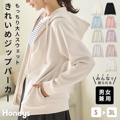 Honeysきれいめジップパーカー トップス パーカー ゆったり ストレッチ メンズ レディース キッズ 白