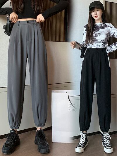3色 大きいサイズ S-4XL ロング丈 パンツ ズボン レディース 百掛け 春秋 ファッション ハイウエスト ウエストゴム 裾ゴム カジュアル スラックス 気質 無地 快適