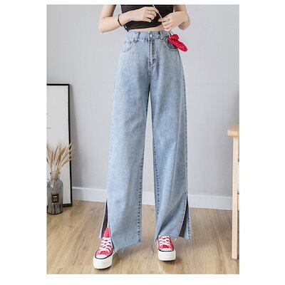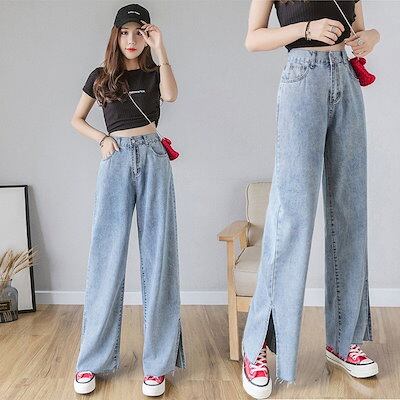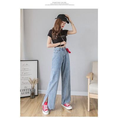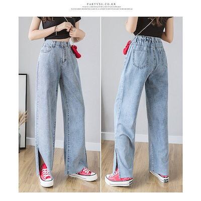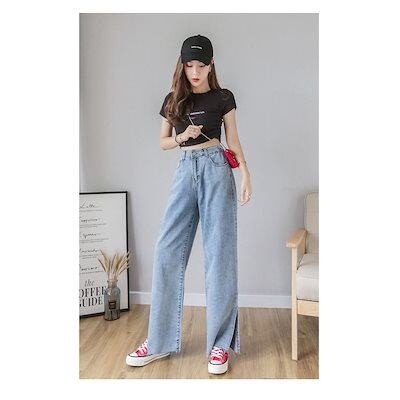 レディース 夏用 スラックス綿ジーパン長ズボンハイウエストワイトパンツ ストレートパンツ ロング 大