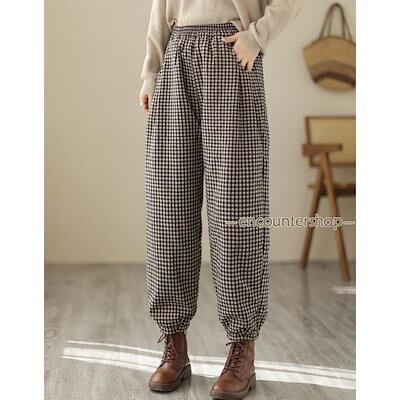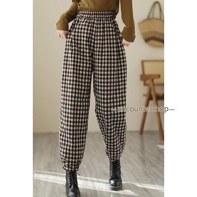 サルエルパンツ チエック柄 中綿パンツ 厚手 ズボン ボトムス テーパードパンツ レディース 大きいサイズ 暖かい 無地 カジュアル 着痩せ 秋冬