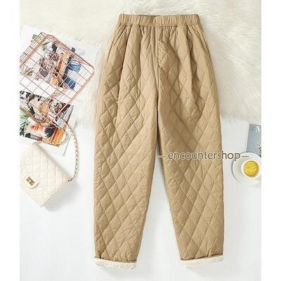 中綿パンツ サルエルパンツ ズボン ボトムス テーパードパンツ レディース 大きいサイズ ゆったり 厚手 無地 カジュアル 着痩せ 秋冬 30代 40代