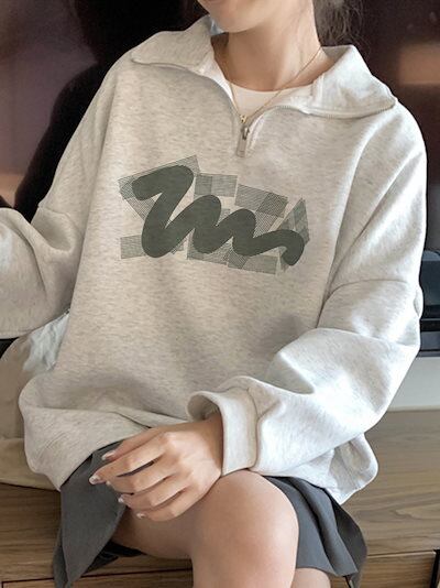 韓国 パーカー ハーフジップ スウェット レディース 春と秋 長袖Tシャツ トップス 冬
