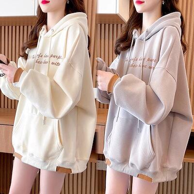 韓国 パーカー フェイク2ピース フード付き スウェット レディース 秋冬 ルーズ ジャケット