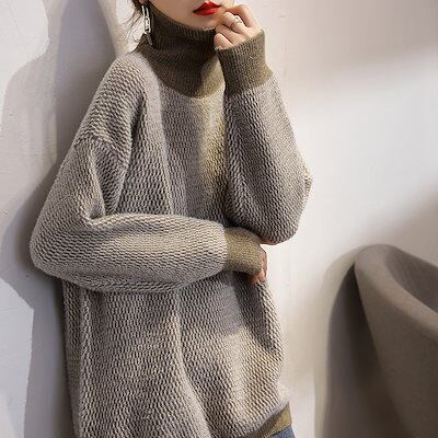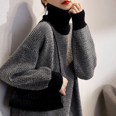 人気なリブニット 秋冬 人気新作日韓国ファッション セーター レディース 高級感 気質 百掛け ハイネック ニットセーター ゆったり カシミヤタッチトップス インナー 暖かい通勤ベーシックニット