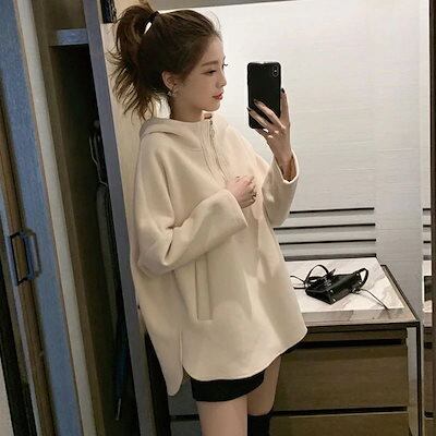 パーカー ゆったりスウェット 秋冬 流行り レディース 無地カジュアル百掛け 韓国ファッション 体型カバー ゆったり大きいサイズ 長袖トップス