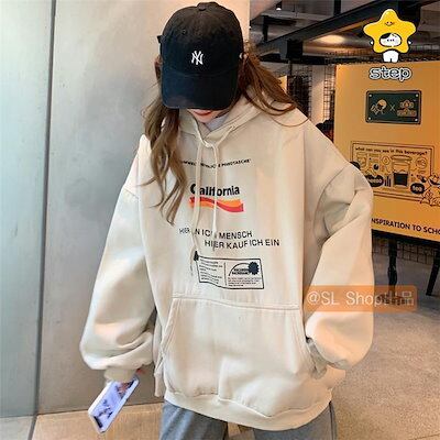 パーカー レディース 長袖 トップス 冬 裏起毛 厚手 オーバーサイズ ゆったり 英字柄 可愛 暖かい ポケット付き フード付き おしゃれ カジュアル 冬服