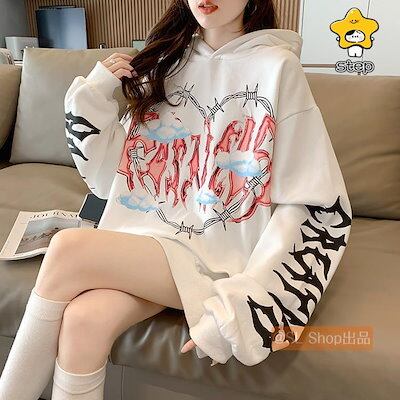 パーカー レディース 長袖 トップス 裏起毛 厚手 防寒 保温 大きいサイズ ゆったり おしゃれ フーディー 冬 冬服 カジュアル 英字柄 ハット柄