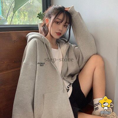 パーカー レディース 前開き ゆったり トップス アウター 秋冬 長袖 防風 コート薄手 フード付き スウェット ジャケット 着痩せ 羽織