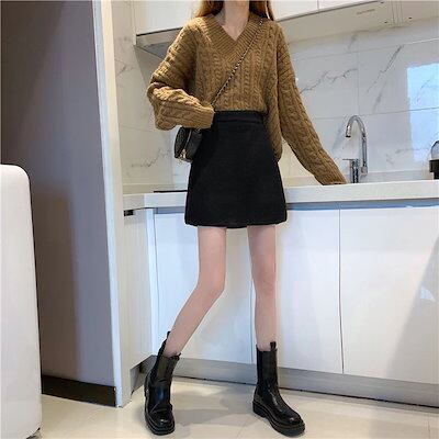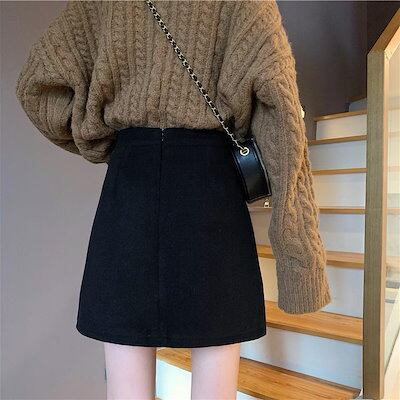 【急速出荷】秋冬 新作 ハイウエスト 百掛け スカート 着痩せ タイトスカートカジュアル ラシャスカート ミニスカート 大きめサイズ