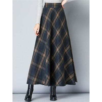 ロングスカート レディース スカート 冬 秋 Aライン 厚手 ロング丈 チェック柄 暖かい カジュアル きれいめ 大きいサイズ 秋冬 フレアスカート マキシ丈