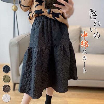 スカート レディース ボトムス キルティング きれいめ フレアスカート ロングスカート マーメイドスカート マーメイド フレア ロング 赤外線中綿 中綿 秋冬 暖かい ロング ウエストゴム ミモレ丈