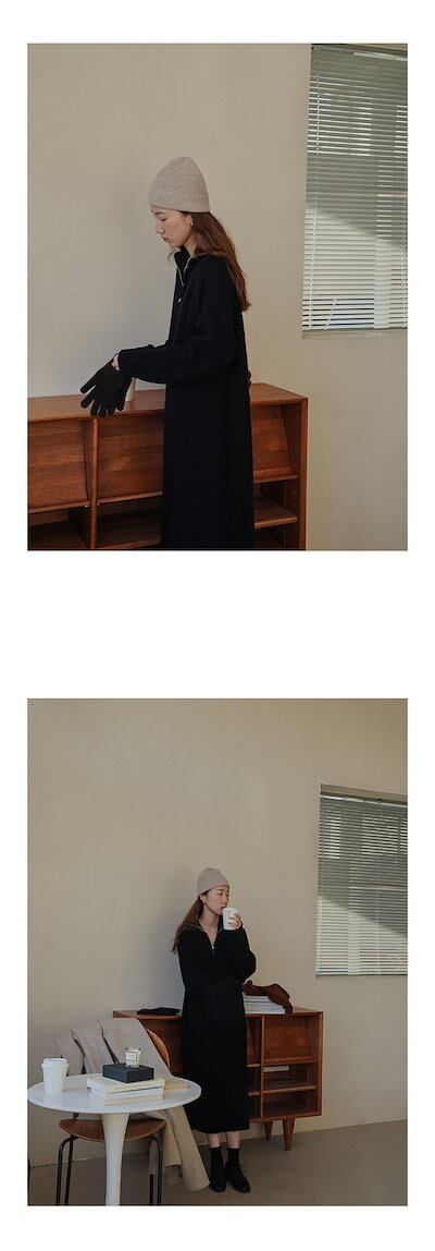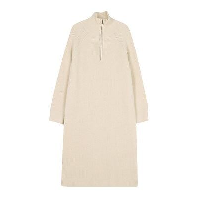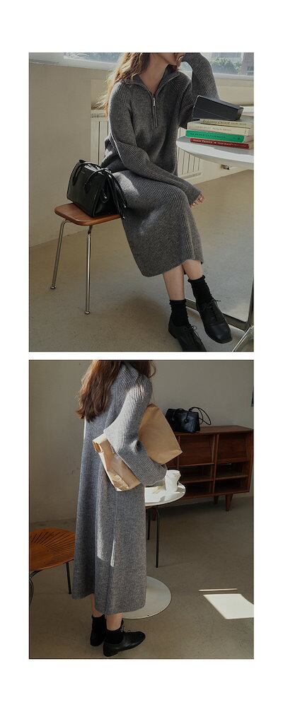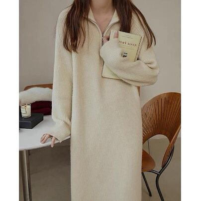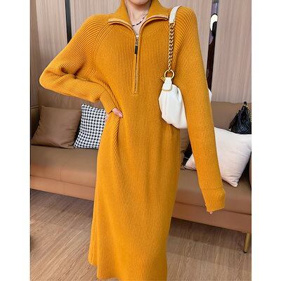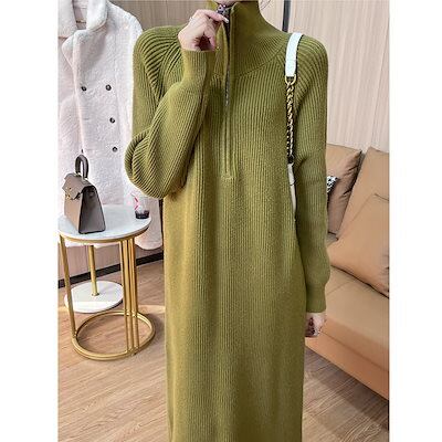 【新色追加】品貭保証 ロングワンピース 気質 着やせ ニットワンピース 秋冬ハーフハイカラーロングウエストウエストは細くてシンプルな気質セーターベーススカート女性