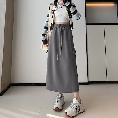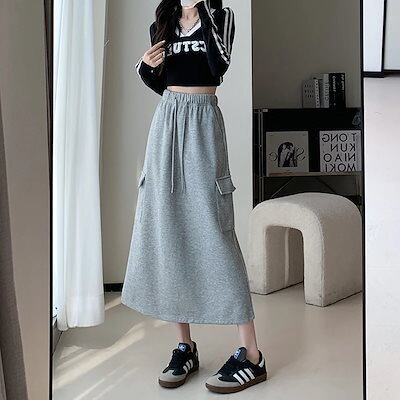 【急速出荷】【2枚購入で 2oo円OFF! 】2024春夏新作 着痩せ スカート ロングスカート ハイウエスト Aライン スタイルアップ カジュアル 運動 セミロング スリット タイトスカート