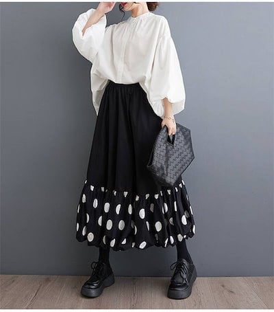 スカート ドット バルーンスカート レディース 秋 水玉柄 ロングスカート 切替 ボトムス ミモレ丈 きれいめ フレア ウエストゴム 春 秋 冬 ロングスカート フェミニン カジュアル 大人 可愛い