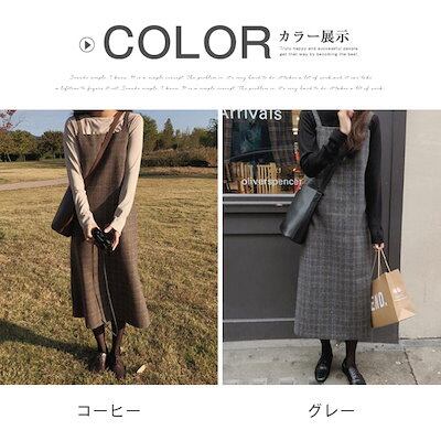 ジャンパースカート レディース 秋 冬 チェック ワンピース ノースリーブ ジャンパースカート ロング丈 ジャンスカ 重ね着 レイヤード 体型カバー 可愛い 大きいサイズ おしゃれ カジュアル 着痩せ