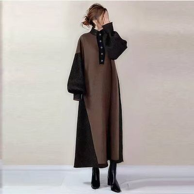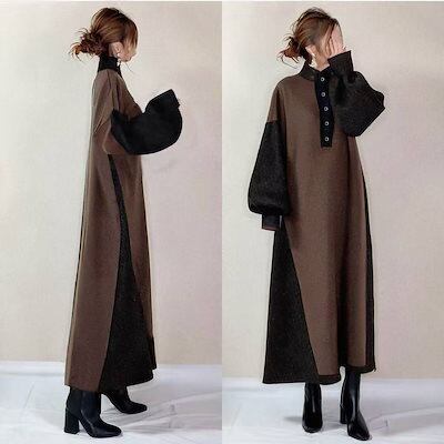 【超人気好評 急速出荷】日系 ニットワンピース 秋冬 着痩せ 新商品 長袖 ゆったり レディースファッション ロングワンピース 大きめサイズ シャツワンピース 韓国ファッション