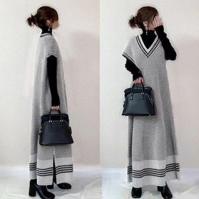 【超人気好評 急速出荷】日系 大きめサイズ ニットワンピース スカート 二点セット 新商品 長袖 ゆったり ワンピース秋冬 ロングワンピース シャツワンピース 着痩せ レディースファッション 韓国