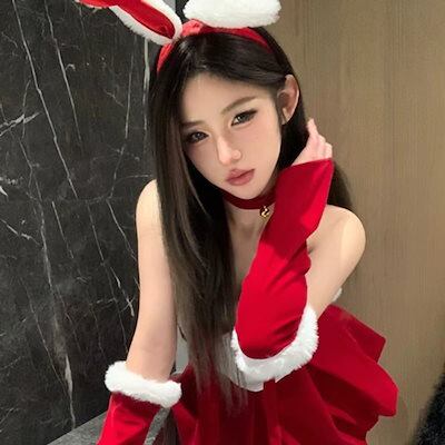 【 3天内迅速な出荷 】【4点セット】ワンピースレディース秋冬クリスマスウサギのセクシーなベルベットのリボントリミング胸元の短いスカート