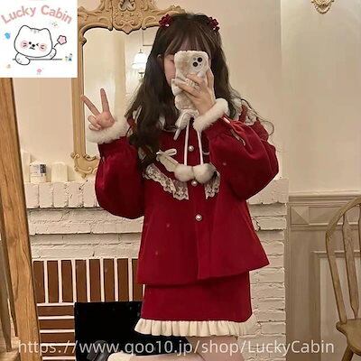 【 3天内迅速な出荷 】サンタコス 冬 レッド ツイード クリスマス レディース 新年 ショート トップス スカート セット脚魅せミニスカート
