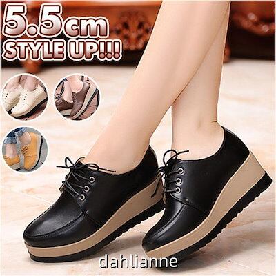 厚底靴 レディース プラットフォームソール 厚底シューズ マニッシュシューズ 厚底スニーカー 革靴 紐靴 おしゃれ シンプル 履きやすい 歩きやすい カジュアル