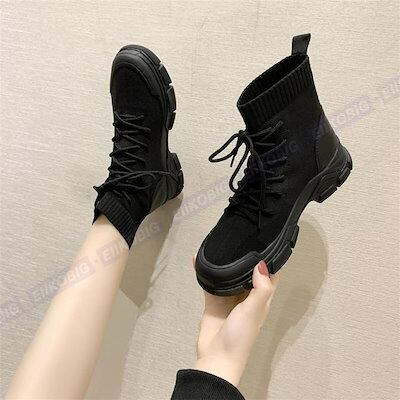 【beifengzh 0 ng】新作スニーカー スニーカーブーツ レディース ソックススニーカー ソックスブーツ ショートブーツ 黒 レースアップ 紐靴 靴 女性 韓国 カジュアル 大人可愛い