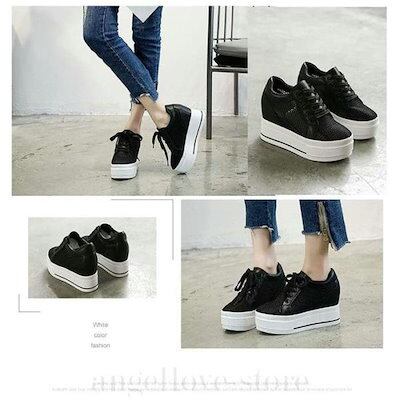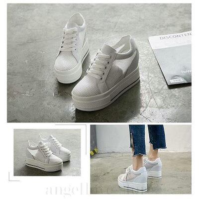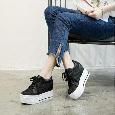 良い商品!スニーカー インヒール レディース 編み上げ ヒールスニーカー 厚底 メッシュスニーカー インヒール レースアップ ウェッジソール スニーカー インヒール